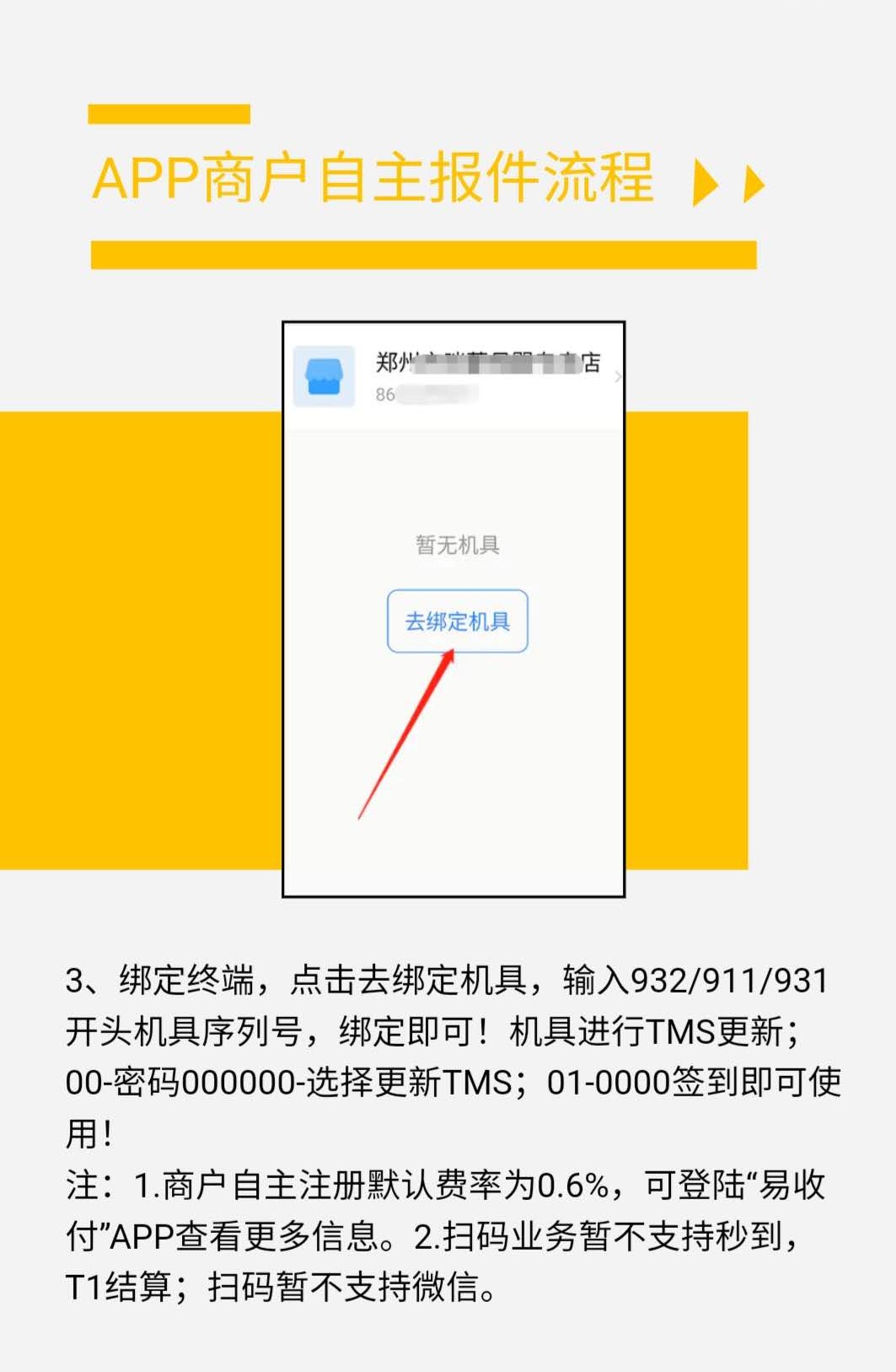 3:綁定終端。點擊去綁定機具,通過輸入機具序列號即可進行綁定,pos機卡機,TMS更新即可。