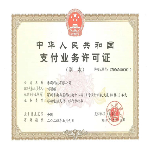 作為國內知名的第三方支付平臺,樂刷早在2019年央行公布的第七批支付牌照中成功續展,是繼2013年獲得牌照后的首次續展,支付牌照許可區域范圍為全國地區,業務類型涵蓋銀行卡收單、移動電話支付,有效期為5年。